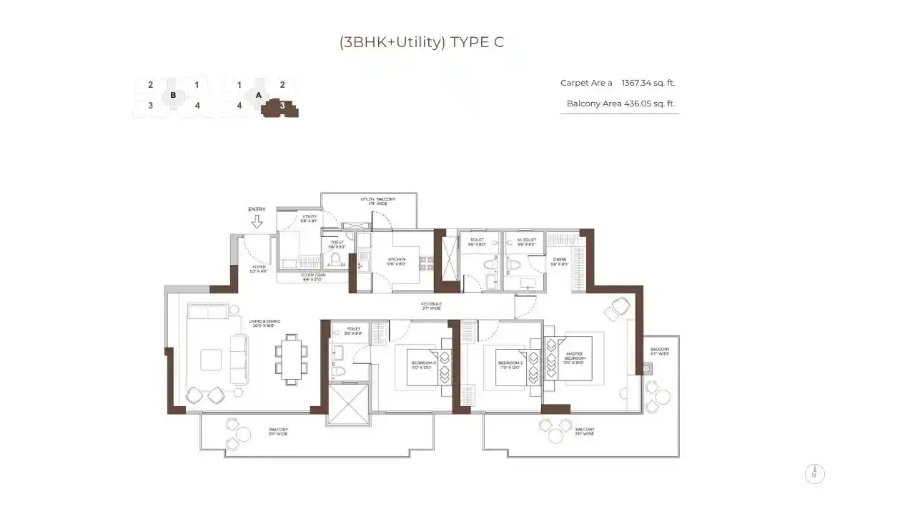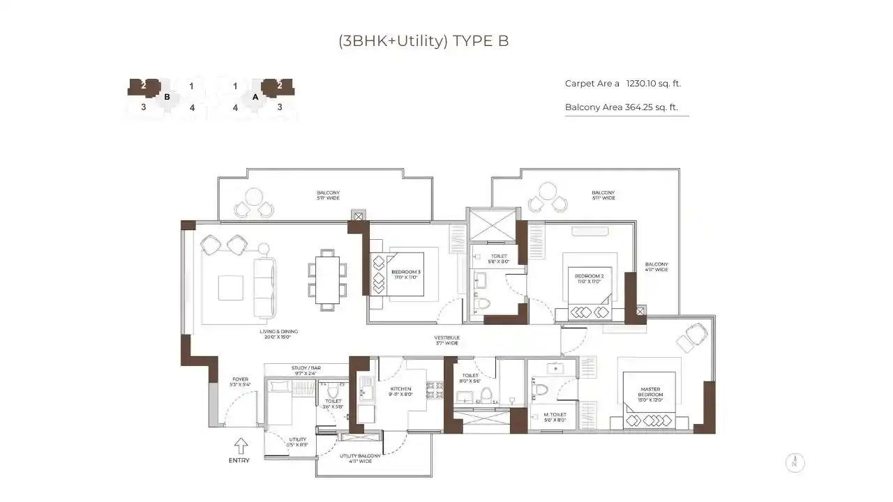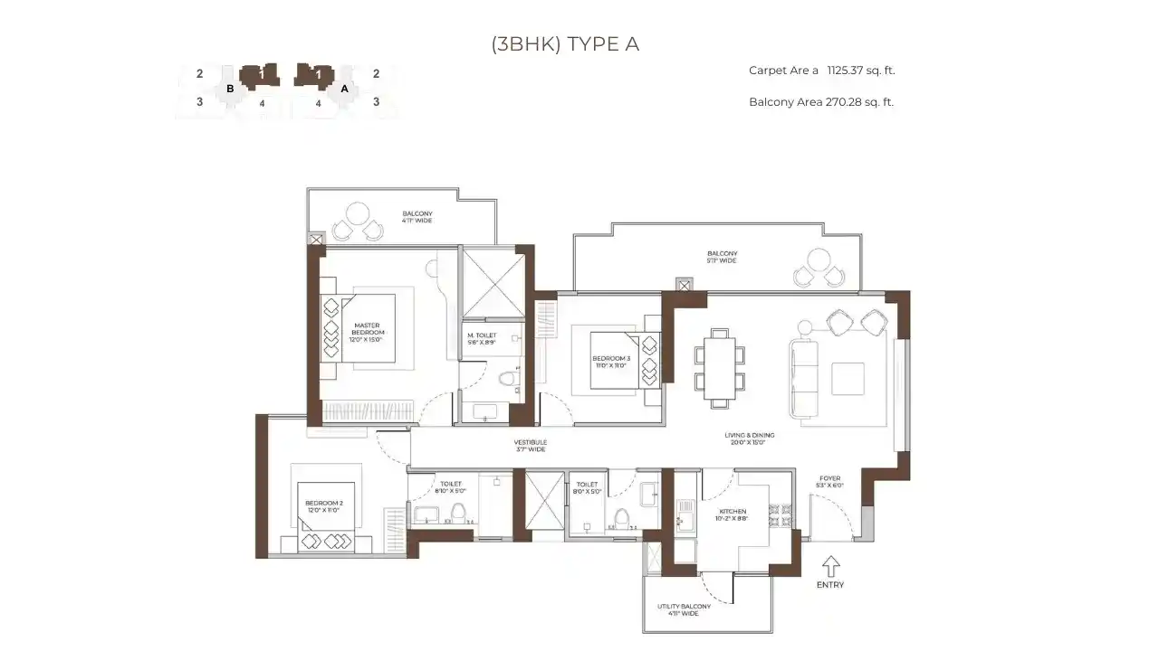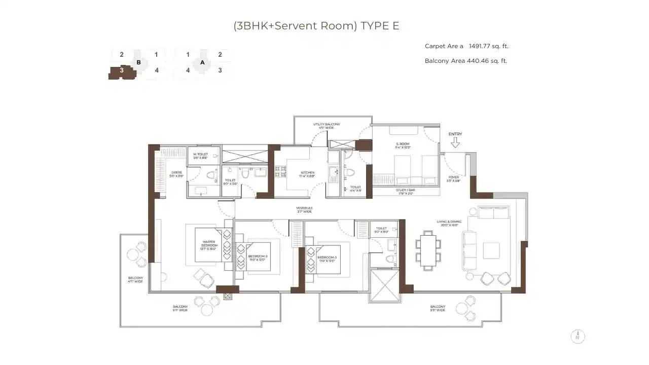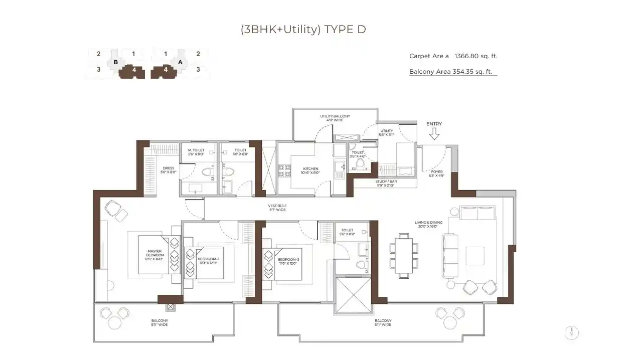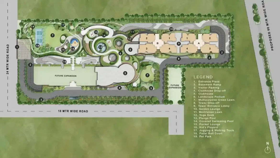 The project is spread over 5.5 acres and is a safe, gated community with 2 tall towers, each going up to 32 floors. There are only 268 flats here, so it feels private and exclusive. Homes are big and airy, starting from 1,995 sq. ft. to 2,695 sq. ft., with modern looks and full comfort for today’s families.